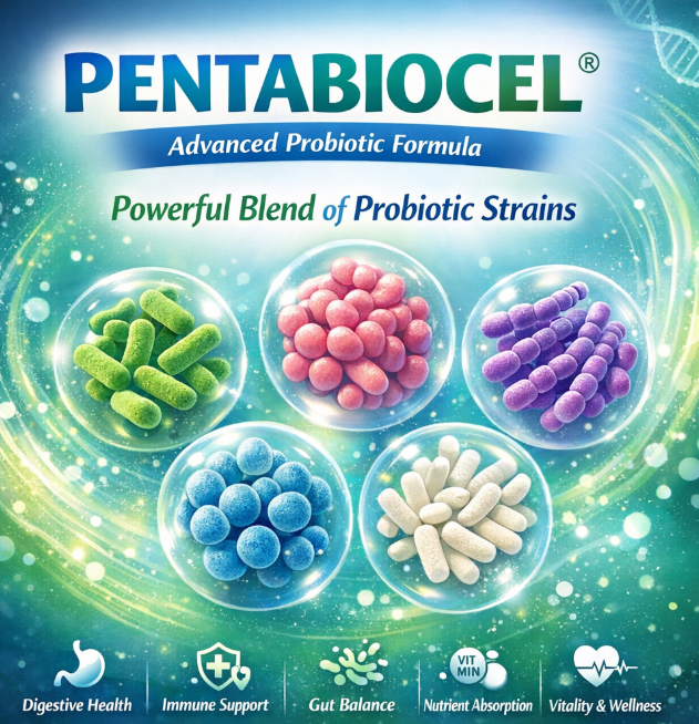 PENTABIOCEL - MULTI-STRAIN PROBIOTIC BLENDS Pentabiocel is a probiotic supplement made from a specific blend of beneficial bacterial strains intended to support gut health and the balance of the intestinal microbiota. Key Points It's a probiotic ...