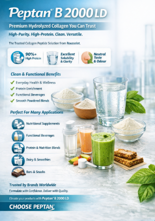 Peptan® B 2000 LD is your premium collagen peptide solution - offering high protein, clean solubility, neutral sensory properties, and broad compatibility for innovative wellness and functional food products.